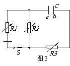 4.平行板电容器C与三个可变电阻器R1、R2、R3以及电源连成如图3所示的电路。闭合开关S待电路稳定后,电容器C两极板带有一定的电荷。要使电容器所带电荷量增加,以下方法中可行的是( )