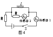 图4是用电流传感器(相当于电流表,其电阻可以忽略不计)研究自感现象的实验电路,图中两个电阻的阻值均为R,L是一个自感系数足够大的自感线圈,其直流电阻值也为R。图5是某同学画出的在t0时刻开关S切换前后,通过传感器的电流随时间变化的图像。关于这些图像,下列说法中正确的是( )