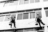 高层建筑的外观保洁工作一般由被称为“蜘蛛人”的保洁员 来承担.如图所示,保洁员由上到下对建筑物的玻璃幕墙进行清洁工作.设保洁员分别在五楼、三楼作业时,双腿伸直支撑身体(认为保洁员双腿与墙面始终保持垂直)并保持静止时,绳子对保洁员的拉力分别为T1、T2,保洁员所受墙面的支持力分别为F1、F2,则