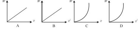 某学习小组做探究“合力的功和物体速度变化关系” 实验,装置如图。图中小车是在一条橡皮筋作用下弹出,沿木板滑行,这时,橡皮筋对小车做的功记为W,当用2条、3条……完全相同的橡皮筋并在一起进行第2次、第3次……实验时,使每次实验中橡皮筋伸长的长度都保持一致,则橡皮筋对小车做的功可分别记做W、2W、3W……;每次实验中小车获得的速度由打点计时器所打的纸带测出,几位同学根据测定的数据在坐标系中作出相应的图象,其中能准确反映橡皮筋对小车做的功与小车速度之间关系的是