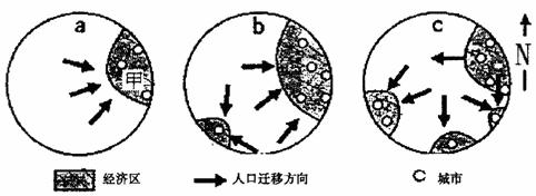 读“某国家经济区发展变化模式图”,完成3-4题。