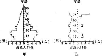 (2)甲、乙两国中,自然增长率较大的是 国;人口将出现负增长的是 国;具有发展中国家人口年龄结构特点的是 国。