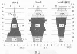 图2为亚洲某国人口金字塔图,读图回答3-4题。