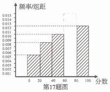 (Ⅱ)若满意程度在[0,20]的5人中恰有2位为女性,座谈会将从这5位市民中任选两位发言,求至少有一位女性市民被选中的概率。