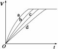 等质量的铁与过量的盐酸在不同的实验条件下进行反应,测定在不同时间t产生氢气体积V的数据,根据数据绘制得到下图,则曲线a、b、c、d所对应的实验组别可能是 ( )