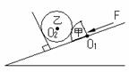 在固定于地面的斜面上垂直安放了一个挡板,截面为四分之一圆的柱状物体甲放在斜面上,半径与甲相等的光滑圆球乙被夹在甲与挡板之间,没有与斜面接触而处于静止状态,如图所示。现对甲施加一平行于斜面向下的力F,使甲沿斜面方向极其缓慢地移动,直至甲与挡板接触为止。设乙对挡板的压力为F1,甲对斜面的压力为F2,在此过程中( )