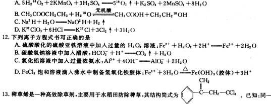 常被用做“示踪原子”。帮助人们认识化学反应的机理。下列用“示踪原子”标示的化学方程式正确的是 ![]()