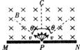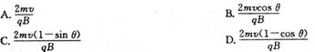 如图所示,在屏MN的上方有磁感应强度为B的匀强磁场。磁场方向垂直纸面向里.P为屏上的一小孔.PC与MN垂直.一群质量为m、电荷量为-q的粒子(不计重力)。以相同的速率v,从P处沿垂直于磁场的方向射人磁场区域.粒子入射方向在与磁场B垂直的平面内,且散开在与PC的夹角为θ的范围内.则在屏MN上被粒子打中的区域的长度为