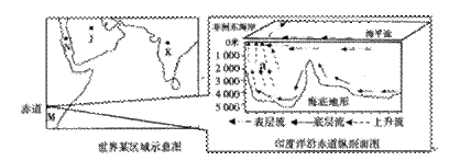 读世界某区域示意图及印度洋沿赤道纵剖面图。