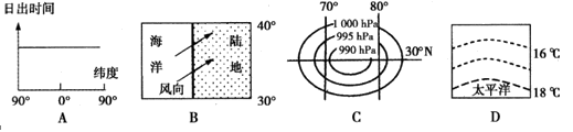 我国飞船于北京时间 2009年10 月 12 日 9 时许成功发射,17日凌晨安全返回。据此回答下题。下图是以极点为中心K*s^5#u的四幅半球图,若用阴影部分表示飞船发射时刻区时为 10 月 12 日K*s^5#u的范围。其中最接近K*s^5#u的是