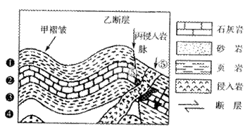 4.下图为某处地层未曾倒置K*s^5#u的地质剖面图,其中①至④代表所在地层K*s^5#u的成岩作用。下列有关该处地质事件发生K*s^5#u的先后顺序,最正确K*s^5#u的是