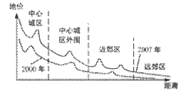 11.在2007年地价变化曲线上,近郊区地价出现了两个峰值,根据城市功能分区理论模型推测该区可能建设了
