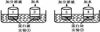 35. 猪笼草是一种食虫植物,为了验证猪笼草分泌液中有蛋白酶,某学生设计了两组实验,如图所示。