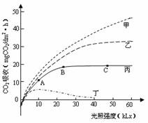 (3)限制曲线丙AB段光合作用的因素是 ,限制BC段光合作用的因素是 ,C点与B点相比,植物体内NADPH的相对含量要 。