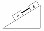 如图所示,质量相等的木块A、B之间用一个轻质杆连接,斜面固定不动,木块A、B与斜面之间的动摩擦因数分别为μ1 、μ2,当木块沿斜面加速下滑时,下列说法正确的是