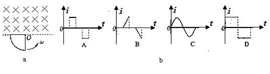 逆时针匀速转动。设线框中感应电流方向以逆时针为正,那么在图b中能正确描述线框从图a中所示位置开始转动一周的过程中,线框内感应电流随时间变化情况的是