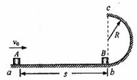 23.(17分)如图所示, 半径R=0.1m的竖直半圆形光滑轨道bc与水平面ab相切。质量m=0.1kg的小滑块B放在半圆形轨道末端的b点,另一质量也为m=0.1kg的小滑块A,以v0