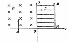 24.(18分)如图所示,在坐标平面的第I象限内存在大小为E、方向水平向左的匀强电场,足够长的挡板MN与x轴垂直放置且距离点O为d,在第II象限内存在垂直于纸面向里的匀强磁场,磁感应强度为B。一质量为m,带电量为-q的粒子(重力忽略不计)从A点以一定的初速度垂直x轴进入磁场,粒子恰好到达O点而不进入电场,OA的距离为L。该粒子仍从A点进入磁场,但初速度大小为原来的4倍,为使粒子进入电场后能垂直打在挡板MN上,