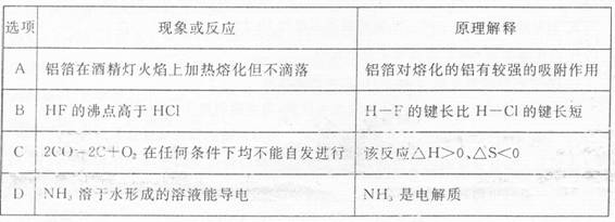 7.下列现象或反应的原理解释正确的是( )