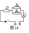 1若把用电器D接入图13所示的电路中时,电流表的读数为0.100A,已知A、B两端电压恒为1.5V,则定值电阻R0阻值为________Ω;
