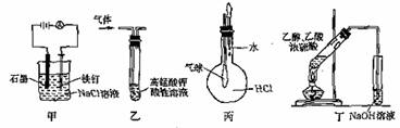 C.装置丙:验证HCl气体在水中的溶解性 D.装置丁:实验室制取乙酸乙酯