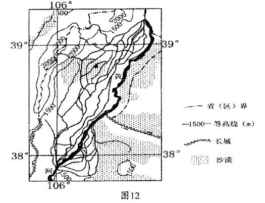凌汛是指冰凌阻塞河流,水位明显上涨的水文现象。图12示意黄河某河段水系分布,读图回答下列问题。