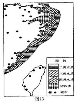图13示意我国东海海域水质分布状况,据图回答下列问题。