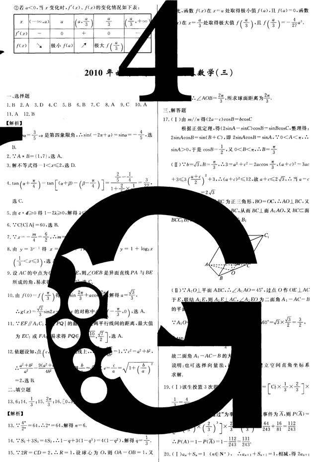 17.(12分)在△ABC中,a、b、c分别为角A、B、C的对边,m=(2a-c,b),n=(cosC,cosB),且m∥n。 (1)求角B的大小; (2)若
