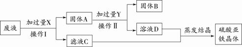 (4)某实验室的废液中含有大量的FeSO4、CuSO4,小刚同学欲从上述废液中回收Cu,并得到副产品FeSO4,设计实验流程如下图所示,回答问题: