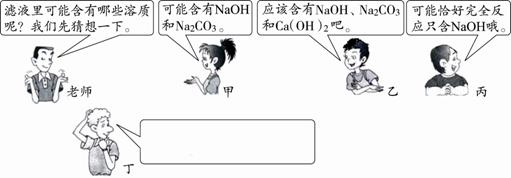 33.(7分)学习碳酸钠知识时,老师做碳酸钠溶液和澄清石灰水反应演示实验,并对浑浊液过滤,得到澄清滤液。课堂上老师的提问和同学们的回答如下图所示。