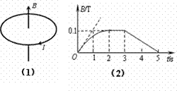在竖直向上的匀强磁场中,水平放置一个不变形的单匝金属圆线圈,线圈所围的面积为0.1m2,线圈电阻为1Ω.规定线圈中感应电流I 的正方向从上往下看是顺时针方向,如图(1)所示.磁场磁感应强度B随时间t的变化规律如图(2)所示.则以下说法正确的是