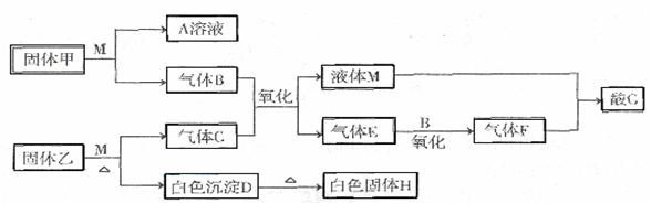 28.(15分) I 在下图转化关系中,固体甲的焰色反应呈黄色,M为常见的液体物质,酸G是重要的化工产品和化工原料;固体H能溶解在A和酸G且H为良好的耐火材料(图中部分产物没有列出)。