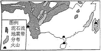 读我国西南地区地震和泥石流等地质灾害分布图,回答14-15问题: