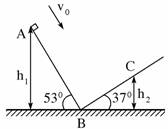 24.(16分)“嫦娥一号”探月卫星的成功发射,实现了中华民族千年奔月的梦想。假若我国的航天员登上某一星球并在该星球表面上做了如下图所示的力学实验:让质量为m=1.0kg的小滑块以v0=1m/s的初速度从倾角为53°的斜面AB的顶点A滑下,到达B点后恰好能沿倾角为37°的斜面到达C点。不计滑过B点时的机械能损失,滑块与斜面间的动摩擦因数均为![]()