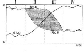 下表是某国出生率、死亡率的变化情况,下图是人口增长模式图。回答第8、9题。