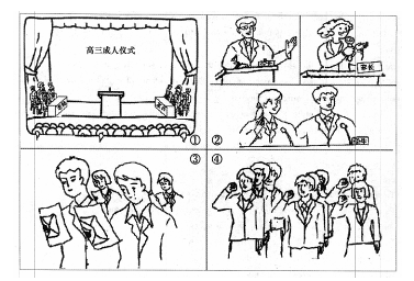 假设你是李华,上周五参加了学校为高三学生举行的成人仪式。请根据以下四幅图的顺序,向你的美国朋友