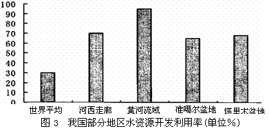9.水资源开发利用率是指流域或区域用水量占水资源可利用量的比率。国际上一般认为,一条河流的合理开发限度为40%。下列关于我国图示地区(图3)叙述正确的是