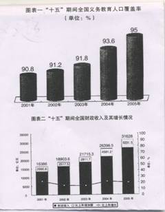 图表一“十五”期间全国义务教育人口覆盖率(单位%)