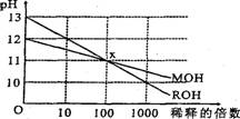 11.MOH和ROH两种一元碱的溶液分别加水稀释时,