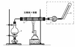 (12分)下图是还原铁粉与水蒸气反应的实验装置,实验时,B中灰色的铁粉变为黑色,且生成的黑色固体物质是一种可溶于稀盐酸的较复杂化合物。请回答下列问题: