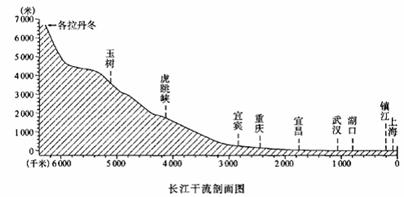 A. 纬度位置 B. 海陆位置 C. 海拔高度 D. 洋流性质 读长江干流剖面图,判断下题: