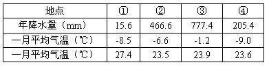 我国北纬35°~40°之间大陆上四地的气候资料
