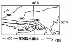 右图是某区域年等降水量线分布图,据图回答16-17题。