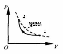 16.如图所示一定质量的理想气体由状态1到状态2的变化曲线,则在整个过程中气体的温度