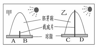 (3)假设甲、乙中含有等量且均匀分布的生长素,按上图示处理后,图中A、B、C、D四块琼脂块中生长素的含量状况为 。(用>、<或=表示)