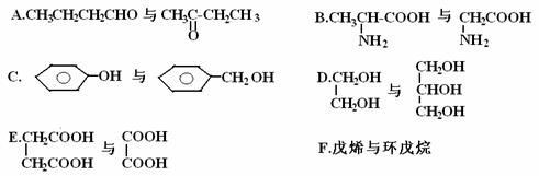 31.(10分)(1)下列各组化合物中,属于同系物的是(填编号,下同) ,