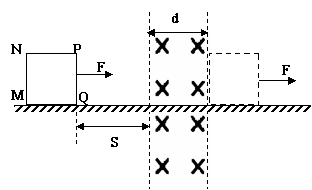 如图所示,正方形导电线框PQMN的边长L=0.4m,质量m=0.2kg,总电阻R=0.1Ω,静止放置在光滑的水平绝缘板上.在线框的右边有一个有边界的匀强磁场,磁场的方向垂直于纸面向里,磁场的宽度与线框的边长相同d=L=0.4m,竖直方向足够长,磁感应强度B=0.5T.现用一水平向右的恒力F=0.8N拉线框,使其向右运动然后进入磁场区,PQ边进入磁场后线框恰好做匀速直线运动,设线框平面在运动中始终保持在竖直平面内.求: