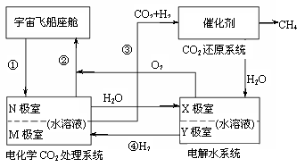 (2)管道②是将处理后的空气混入“电解水系统”产生的新鲜O2中,然后通入飞船座舱内供宇航员呼吸,在“电解水系统”中X极的电极反应为 。