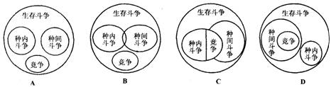 5.下列几组图中,正确表示生存斗争、种间斗争、种内斗争和竞争关系的是