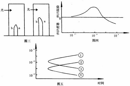 不同反应,则图五中表示a、b两点生长素浓度变化的曲线应分别依次是( )